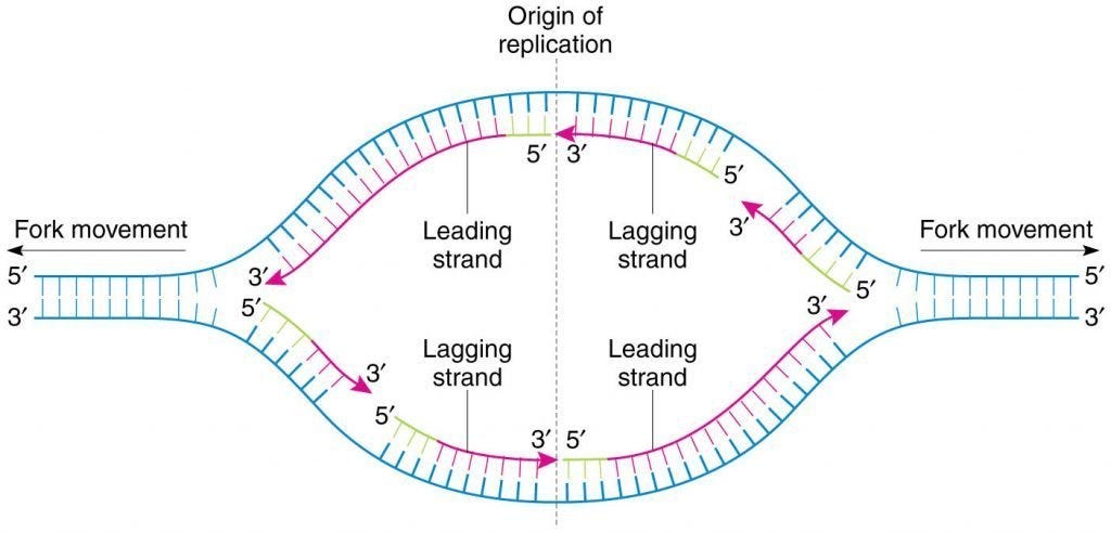 . It is essential as it allows for the synthesis of both the daughter strands required for cell division. Since DNA polymerase can synthesise DNA only in 53 direction DNA synthesis occurs discontinuously on the lagging strand. These vary in length being about 100200 nucleotides in eukaryotes and 10002000 nucleotides in.